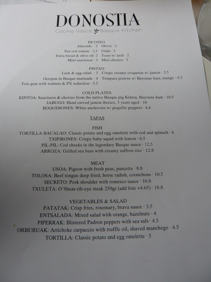The wine list, predominately Spanish , is reasonable with plenty by the glass and with some interesting choices from northern Spain. Traditional cider and the slightly fizzy white Txakoli, rarities in London, reinforce the basque theme. There is no need to be snooty about the house wines here either, which is no surprise given the owners background, a glass of the £3 house white an aromatic Macabeo is a steal in all honesty.