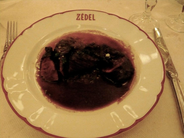 In an era where food seems to be moving towards the minimal the and the Scandanavian, the Zédel has unashamedly walked the other way. This is what I imagine menus looked like in Britain circa 1970, entirely French in influence and language. The prices seem from another age too, sub £5 starters and no mains above £16. You’d imagine with such keen pricing portion sizes would be scaled back in line with their Parisien inspiration. Far from it portions are ample.